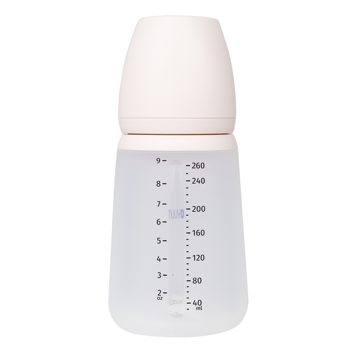 - Trên thân núm bình sữa Moyuum 260ml, vạch phân cách vùng mờ và vùng trong suốt giúp ba mẹ dễ dàng nhận biết và điều chỉnh tư thế bú bình của bé, tạo ra một trải nghiệm ổn định và thuận lợi