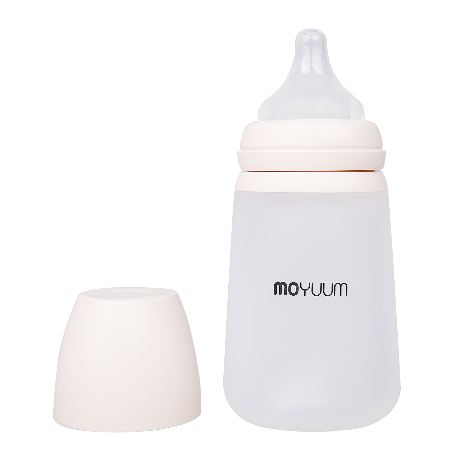 - Bình sữa Moyuum Silicone chính hãng dung tích 260ml sử dụng chất liệu Silicone y sinh cao cấp dùng trong lĩnh vực y tế, có độ bền cực cao, an toàn, không chứa chất độc hại, và không phóng ra các chất vi nhựa khi gặp nhiệt độ cao trong quá trình sử dụng