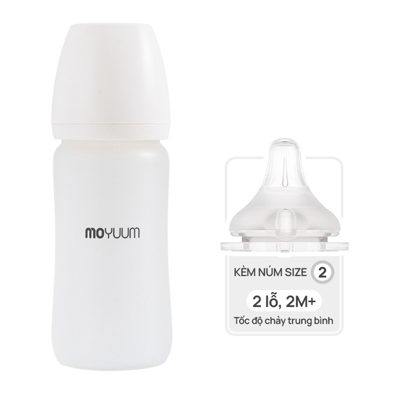Bình sữa Moyuum thủy tinh bọc silicone 240ml tiện lợi, an toàn cho bé sử dụng