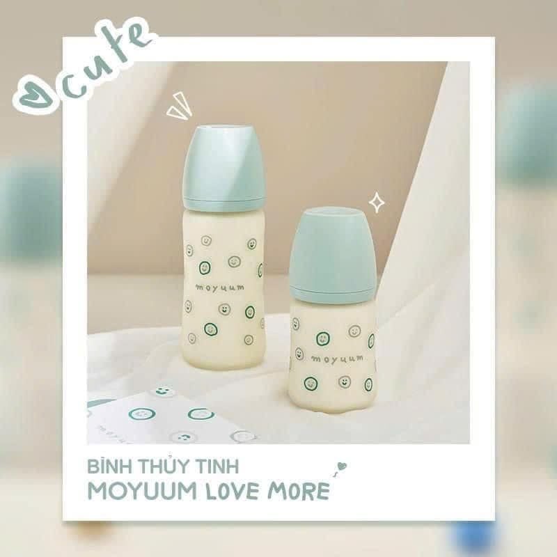 Bình sữa Moyuum thủy tinh Happy more bọc silicone 240ml ứng dụng công nghệ sinh học hiện đại