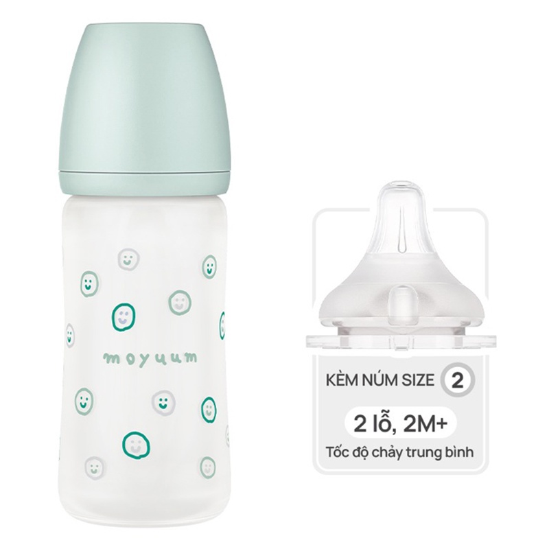Bình sữa Moyuum thủy tinh bọc silicone Happy more 240ml an toàn, tiện lợi cho bé sử dụng