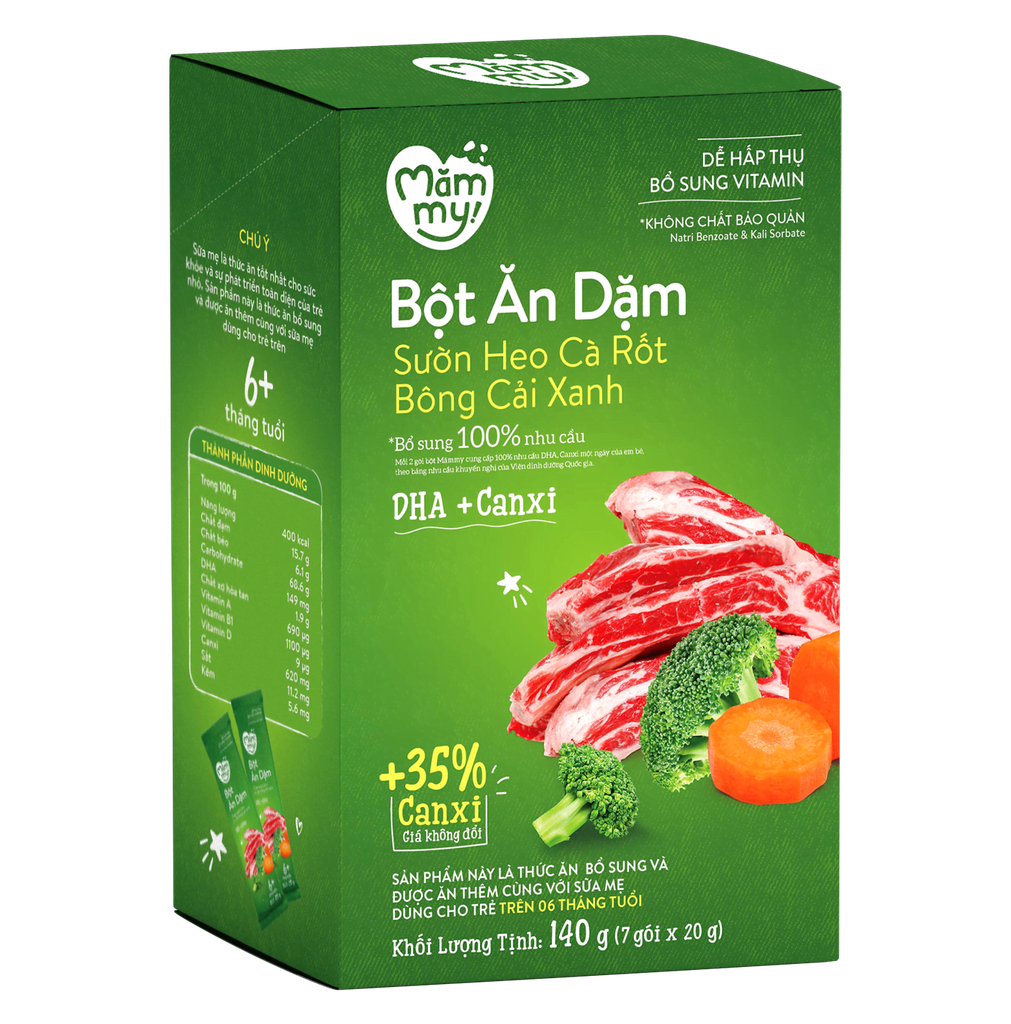 Bột ăn dặm Mămmy sườn heo, cà rốt, bông cải xanh 140g tiện dụng, dễ sử dụng cho bé