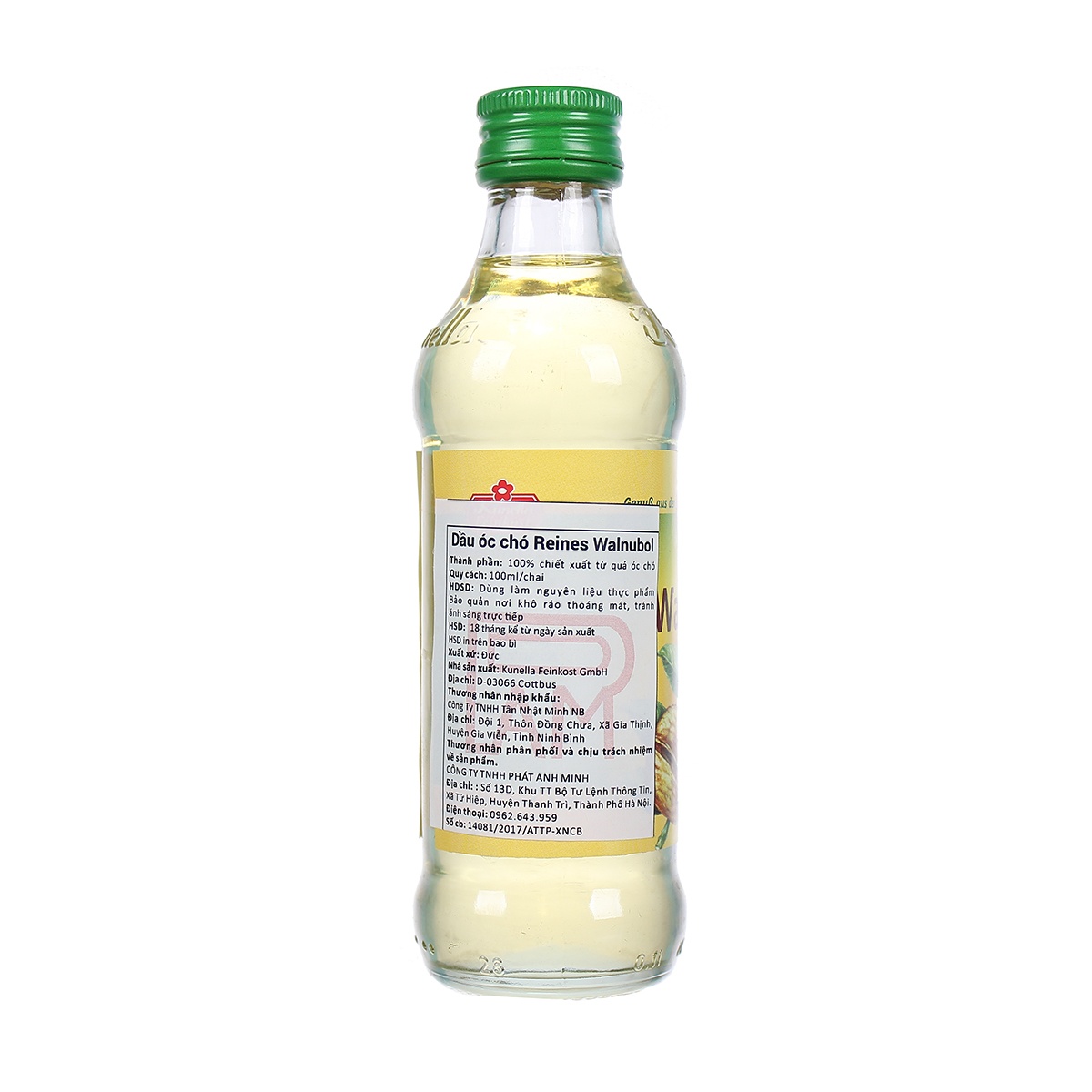 Dầu Óc Chó Đức Kunella 100ml được chiết xuất từ 100% quả óc chó bằng phương pháp truyền thống giúp giữ nguyên hương vị tự nhiên của trái cây với hương vị thơm ngon, nhiều chất dinh dưỡng, vitamin tốt cho thị lực và tăng cường trí nhớ, tốt cho hệ tiêu hóa, giúp bé phát triển toàn diện.