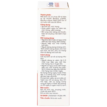 LiveSpo NAVAX – Bào Tử Lợi Khuẩn Dạng Xịt Giúp Giảm Nguy Cơ Viêm Đường Tai, Mũi, Họng