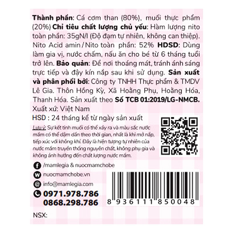 Nước mắm Lê Gia cá cơm cho bé 60ml