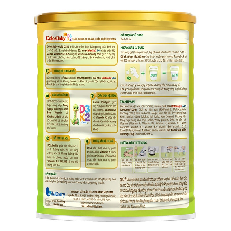 Sữa Colosbaby D3K2 1+ 800g dành cho bé từ 1-2 tuổi