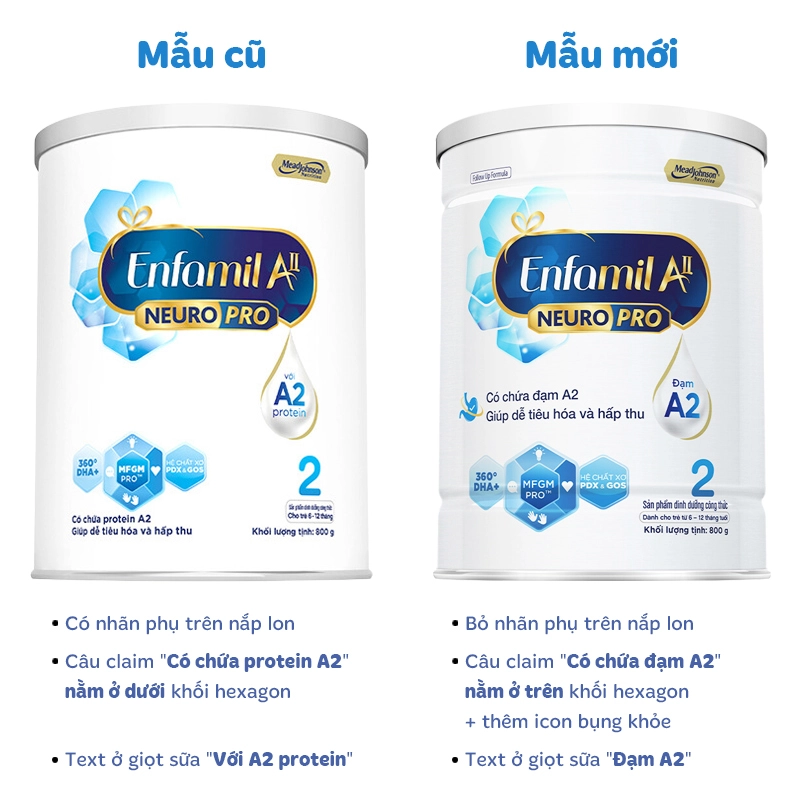 Đặc trưng của dòng sữa Enfa là bổ sung DHA gấp 2 lần giúp tăng cường sự phát triển não bộ cũng như gia tăng nhận thức ở trẻ. Tuy nhiên với sản phẩm A2 mới ra mắt, bên hãng đã sử dụng nguồn đạm quý A2 để làm nguyên liệu sản xuất sữa. Với đặc điểm đạm sữa A2 rất dễ tiêu hóa, hạn chế tình trạng đầy bụng, nôn trớ ở trẻ sơ sinh nên mẹ có thể hoàn toàn yên tâm khi lựa chọn sữa Enfamil A2 cho bé sơ sinh.