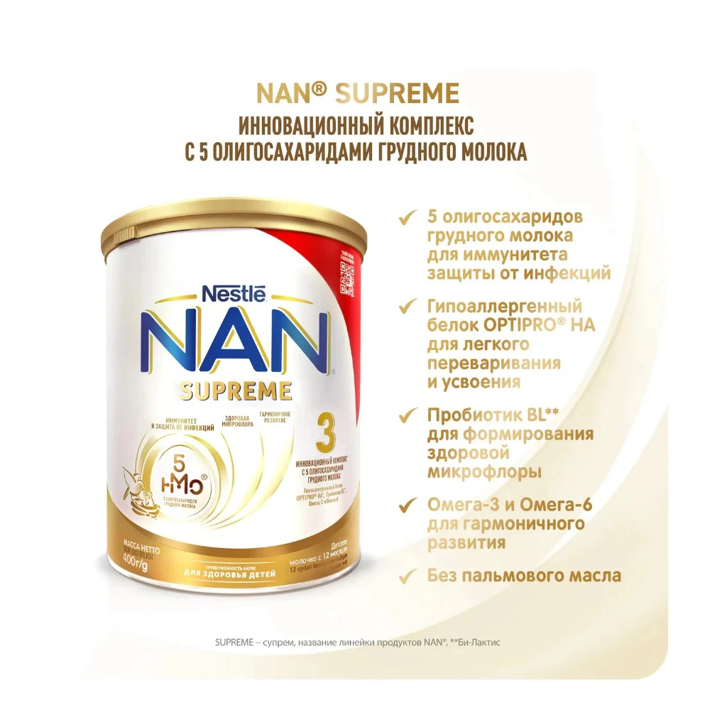Sữa Nan Supreme chống dị ứng cho trẻ sơ sinh với thành phần đạm Whey thủy phân một phần bằng công nghệ HA độc quyền của hãng Nestle. Với công nghệ này, các phân tử đạm được cắt nhỏ giúp bé dễ hấp thu, tăng cân tốt và loại bỏ hoàn toàn nguy cơ dị ứng với đạm sữa bò ở trẻ. Nếu các mẹ đang tìm sữa dinh dưỡng cho bé sơ sinh thì nên chọn mua Sữa Nan Supreme có bổ sung HMO giúp tăng cường sức đề kháng của trẻ, bảo vệ trẻ an toàn khi vừa lọt lòng mẹ